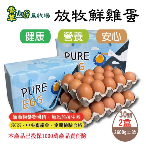 【香草山G】30入禮盒組**嚴選放牧鮮雞蛋**~當日現撿,新鮮供應 友善飼養 無動物用藥殘留,無添加抗生素